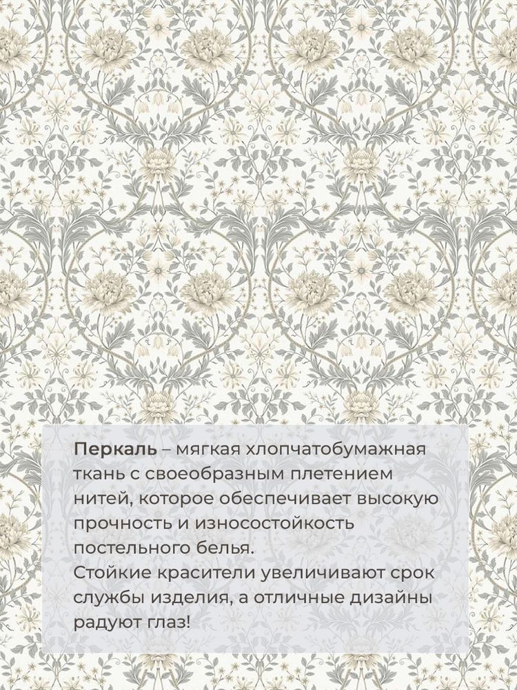 Представляем вашему вниманию изысканный комплект постельного белья 1,5 спальное от ИвановоТекстиль, который станет идеальным выбором для вашего дома. Этот комплект постельного белья 1,5 выполнен из перкаля — плотной, тонкой и гладкой ткани из 100% хлопка высокого качества. Перкаль отличается своей мягкостью и приятными тактильными ощущениями, обеспечивая вам сладкий сон и комфортный отдых. Комплект постельного белья включает в себя простынь размером 150x220 см, пододеяльник размером 150x215 см с входом в нижнем шве, и две наволочки размером 70x70 см с глубиной клапана не менее 25 см. Постельное белье 1,5 спальное из перкаля плотностью 110 г/м2 не требует особого ухода: его можно стирать при температуре 40°С, оно не растягивается и прекрасно держит форму. Ткань хорошо впитывает влагу, пропускает воздух и не липнет к телу, что делает ваш сон еще более комфортным. Рисунки на перкале получаются яркими и четкими, добавляя эстетическую привлекательность вашему спальному месту. Ивановотекстиль постельное белье производится в Ивановской области и имеет сертификацию качества "ГОСТ 31307-2005", а также зарегистрировано в государственной системе маркировки "Честный знак", что подтверждает его высокое качество и надежность. Выбирая белье постельное 1,5 спальное от ИвановоТекстиль, вы получаете не только стильное и практичное решение для вашей спальни, но и уверенность в качестве и долговечности изделия. Позвольте себе насладиться роскошью и уютом с нашим комплектом белья постельного, который станет вашим надежным спутником в мире сладких снов.
