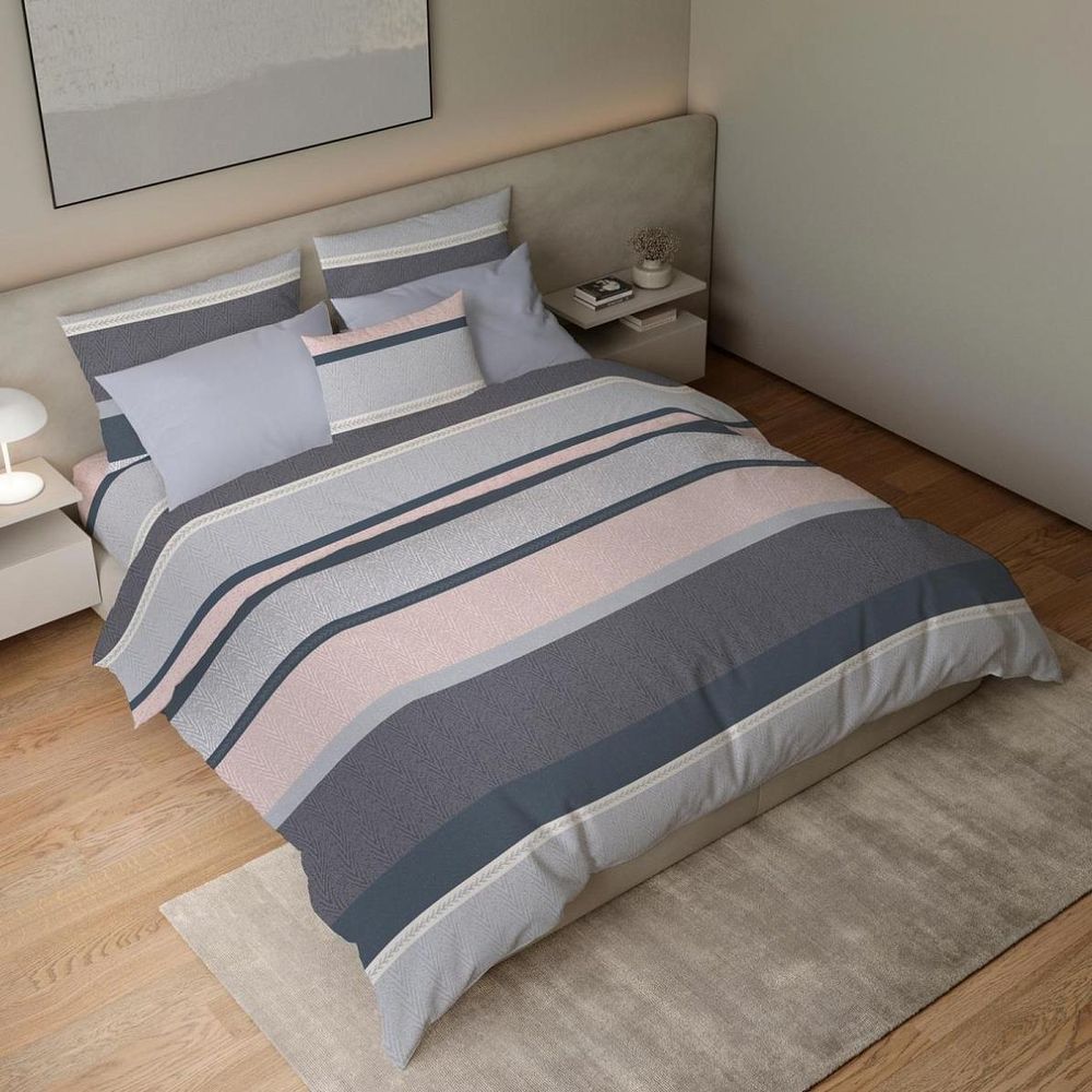 В комплекте: пододеяльник размером 150*215 см с прорезью в нижнем шве, простыня размером 150 * 220 см, две наволочки размером 70 * 70 см с глубоким клапаном (не менее 25 см).