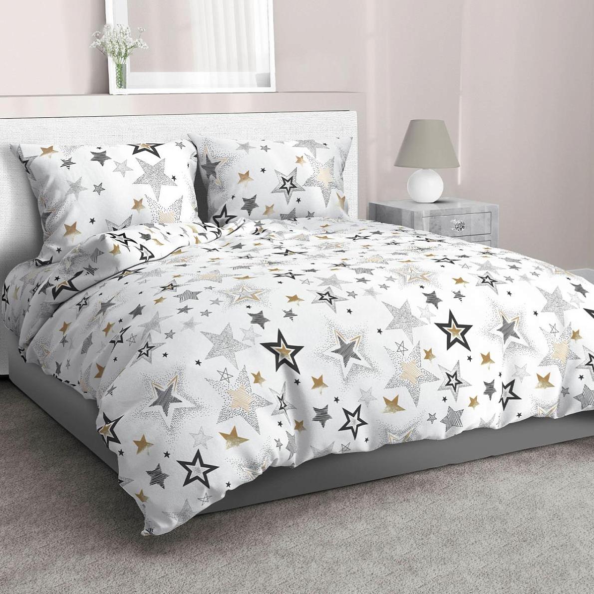 В комплекте: пододеяльник размером 150*215 см с прорезью в нижнем шве, простыня размером 150 * 220 см, две наволочки размером 70 * 70 см с глубоким клапаном (не менее 25 см).
