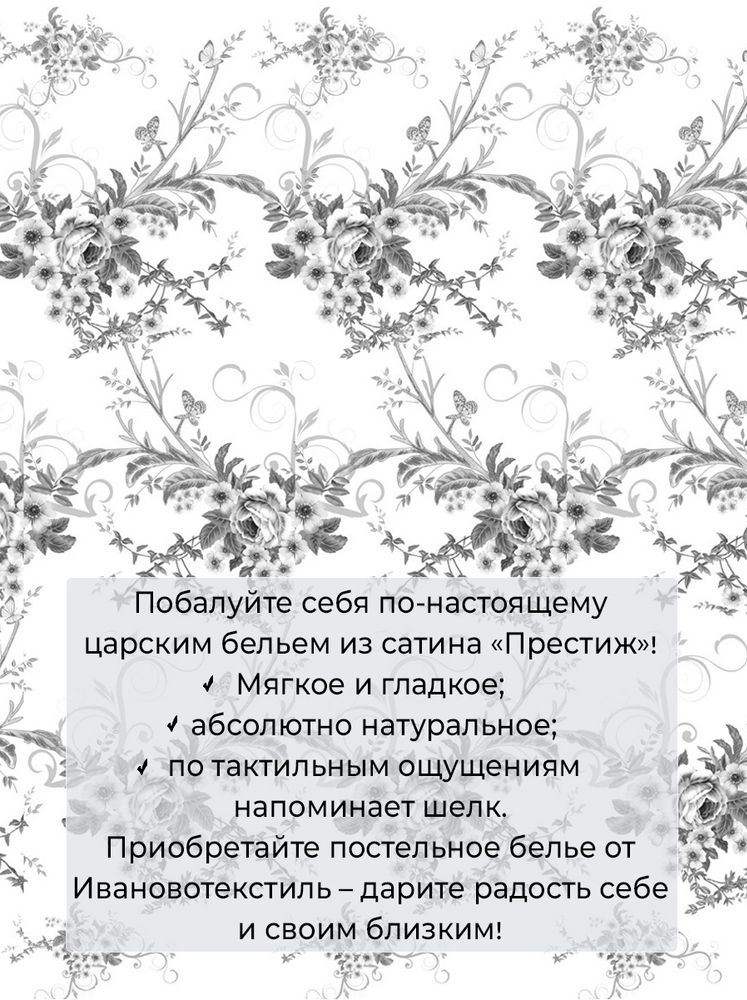 2 спальное постельное белье из сатина "Престиж" плотностью ткани 115 г/м2, несомненно станет достойным дополнением в вашей комнате так как имеет много достоинств: элегантный и благородный дизайн, высокое качество абсолютно натуральной ткани из 100% хлопка, отличное качество пошива, оно плотное, износостойкое, гипоаллергенное, очень приятное по тактильным ощущениям. В комплекте: пододеяльник 180*215 см, оснащенный удобной потайной застежкой на молнии, простыня 240*220 см, две наволочки 70*70 см на молнии. Комплекты постельного белья из сатина «Престиж» - это выбор людей, которые ценят комфорт и выбирают качество.