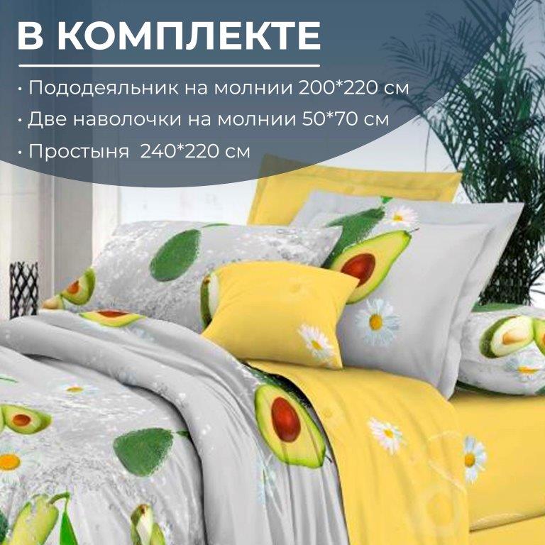 Приятное во всех отношениях постельное белье с Авокадо создаст позитивный настрой, подарит мощный заряд энергии, а яркий дизайн передаст свежесть и новизну интерьеру.