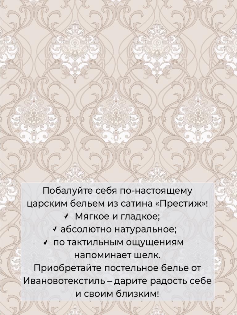 Наше постельное белье Евростандарт из сатина "Престиж" плотностью ткани 115 г/м2 создано для комфортного и приятного сна. В комплекте: пододеяльник 200 * 220 см, оснащенный удобной потайной застежкой на молнии, простыня 240 * 220 см, наволочки 70 * 70 см на молнии - 2 штуки, 50 * 70 см на молнии - 2 штуки. Сатин "Престиж" - это ткань из 100% хлопка, с благородным блеском, который придает изделиям определенный шик, а нежная и гладкая поверхность не оставит никого равнодушным. Постельное белье из сатина служит долго, так как ткань почти не изнашивается (не вытягивается, не деформируется), оно гипоаллергенное, мало сминаемое, дышащее, приятное по тактильным ощущениям, поэтому отдыхать на постельном белье из сатина весьма приятно. Порадуйте себя и своих близких нашим комплектом постельного белья из сатина «Престиж», ведь это идеальный подарок на любой праздник.
