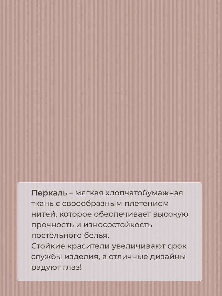 Представляем вашему вниманию постельное белье семейное из перкаля от Ивановотекстиль — воплощение уюта и стиля для вашего дома. Постельное белье семейный комплект включает в себя простынь размером 240x220 см, два пододеяльника 150x215 см с удобным входом в нижнем шве, а также две наволочки 70x70 см с глубиной клапана не менее 25 см. Перкаль — это уникальная ткань из 100% хлопка, которая славится своей плотностью, гладкостью и приятными тактильными ощущениями. Комплект постельного белья семейный из перкаля не требует особого ухода, легко стирается при 40°С, не растягивается и сохраняет форму, обеспечивая вам комфортный и сладкий сон. Ткань отлично впитывает влагу, пропускает воздух и не липнет к телу, а рисунки на ней остаются яркими и четкими. Этот семейный комплект постельного белья станет настоящим украшением вашей спальни, создавая атмосферу уюта и спокойствия. Наши изделия произведены в Ивановской области и соответствуют стандартам качества "ГОСТ 31307-2005". Они также зарегистрированы в системе маркировки "Честный знак", что подтверждает их подлинность и высокое качество. Выбирая постельное белье семейное комплект от Ивановотекстиль, вы получаете не только стильный и практичный комплект, но и уверенность в его долговечности и безопасности. Подарите себе и своим близким комфортный отдых с нашим семейным комплектом постельного белья из перкаля!