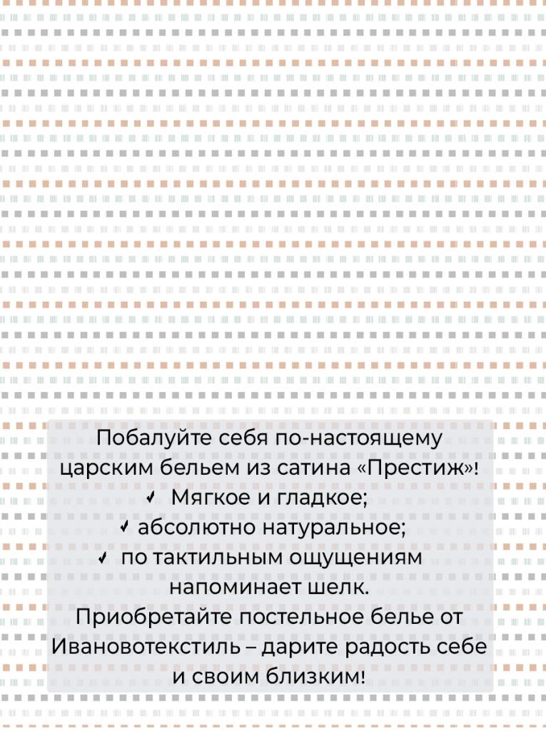 Наволочка (1 штука) из сатина "Престиж" размером 40x40 см на клапане, плотностью ткани 115 г/м2. Сатин "Престиж" - это ткань из 100% хлопка, с благородным блеском, который придает изделиям определенный шик, а нежная и гладкая поверхность не оставит никого равнодушным. Постельное белье из сатина служит долго, так как ткань почти не изнашивается (не вытягивается, не деформируется), оно гипоаллергенное, мало сминаемое, обеспечивает прекрасную регулировку теплового обмена, потому отдыхать под бельем из сатина весьма приятно. Не упустите возможность приобрести наш комплект наволочек из сатина "Престиж" и погрузиться в мир здорового и комфортного сна каждую ночь!