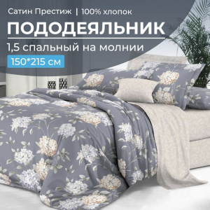 Красивый 1,5 спальный пододеяльник на молнии из сатина «Престиж» размером 150х215, плотностью ткани 115 г/м2. Материал - 100% хлопок, обеспечивающий свежесть и комфортный сон. Сатин «Престиж» имеет очень мягкое и приятное на ощупь плетение. Ткань не подвержена образованию катышков, не электризуется, обладает хорошей воздухопроницаемостью, а также она гипоаллергенна и абсолютно безвредна для здоровья. Поэтому белье из сатина «Престиж» можно застилать детям и беременным. В нашем каталоге вы сможете собрать замечательный комплект постельного белья, исходя из Ваших предпочтений и размеров спальных принадлежностей, а благодаря великолепному качеству ткани и пошива постельное белье прослужит долго и будет радовать Вас и ваших близких.