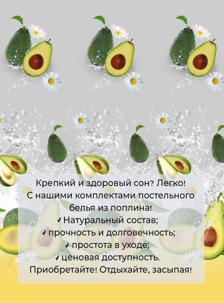 Приятное во всех отношениях постельное белье с Авокадо создаст позитивный настрой, подарит мощный заряд энергии, а яркий дизайн передаст свежесть и новизну интерьеру.