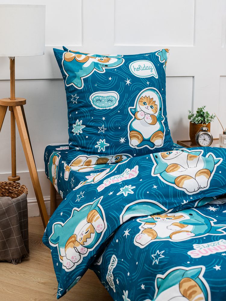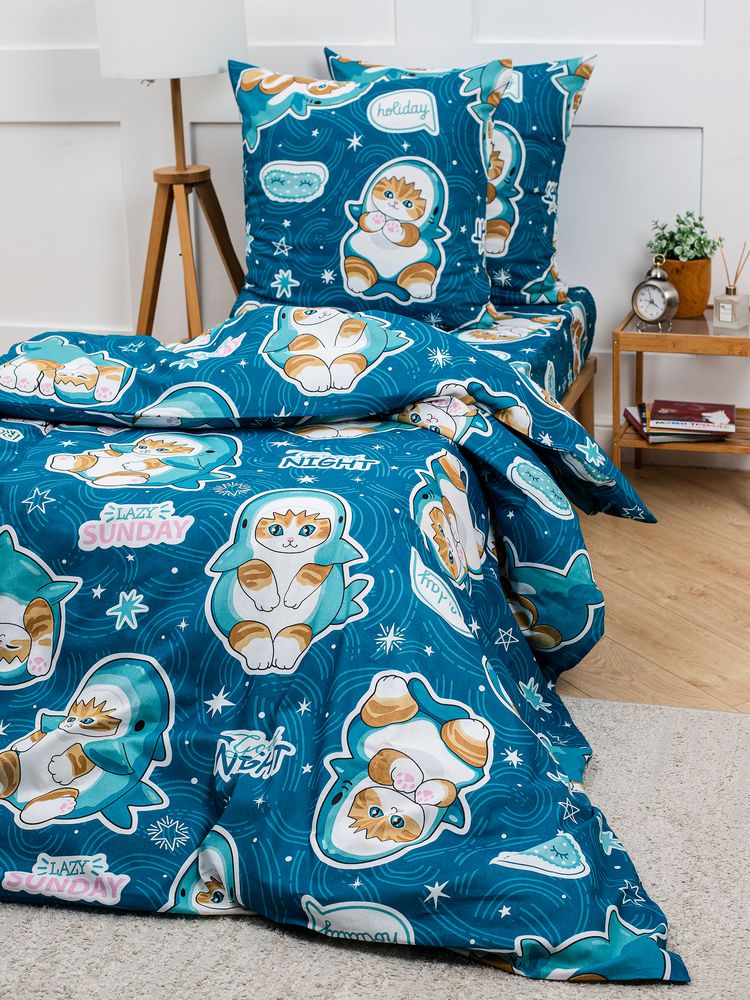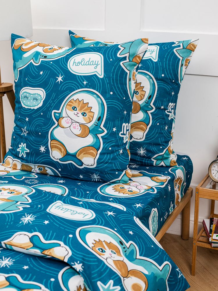 Познакомьтесь с удивительным принтом, сочетающим в себе игривость кота и силу акулы! Этот забавный и креативный дизайн объединяет в себе грацию кошки и мощь акулы, создавая неповторимую атмосферу в вашей спальне. Мягкие и качественные материалы обеспечивают комфортный сон, а яркий и оригинальный рисунок добавит игривости вашему интерьеру. Идеальный выбор для тех, кто любит необычные решения и хочет привнести в свою жизнь немного волшебства и юмора!