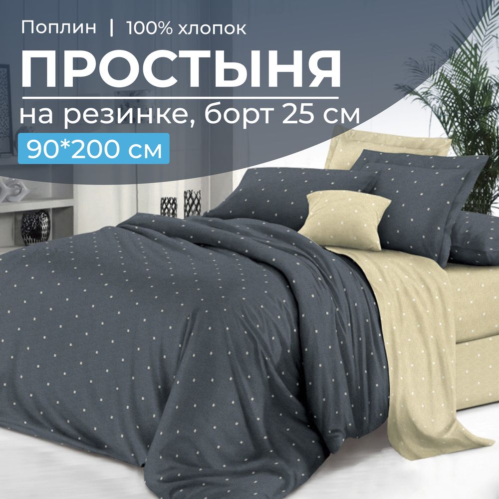Очень удобная простыня на резинке из поплина плотностью ткани 110 г/м2 на спальное место 90*200 см (ширина и длина матраса). Простыня имеет глубокий борт/спуск 25 см. Резинка проходит по всему периметру (кругу) спального места. Простыня из поплина изготовлена из 100% хлопка, который обладает высоким качеством, что гарантирует Вам долговечность и удобство использования. Хлопковая простыня обеспечит приятную прохладу летом и тепло зимой, благодаря своей дышащей и гипоаллергенной структуре. Кроме того, она легко стирается и сохраняет свою форму и качество даже после многих стирок. Выберите качество и комфорт для своего сна с нашей хлопковой простыней на резинке из поплина!Обратите внимание! Простыни сшиты с учетом усадки ткани (с большим припуском по длине и ширине), поэтому необходима предварительная стирка данного швейного изделия.