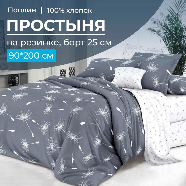 Очень удобная простыня на резинке из поплина плотностью ткани 110 г/м2 на спальное место 90*200 см (ширина и длина матраса). Простыня имеет глубокий борт/спуск 25 см. Резинка проходит по всему периметру (кругу) спального места. Простыня из поплина изготовлена из 100% хлопка, который обладает высоким качеством, что гарантирует Вам долговечность и удобство использования. Хлопковая простыня обеспечит приятную прохладу летом и тепло зимой, благодаря своей дышащей и гипоаллергенной структуре. Кроме того, она легко стирается и сохраняет свою форму и качество даже после многих стирок. Выберите качество и комфорт для своего сна с нашей хлопковой простыней на резинке из поплина!Обратите внимание! Простыни сшиты с учетом усадки ткани (с большим припуском по длине и ширине), поэтому необходима предварительная стирка данного швейного изделия.