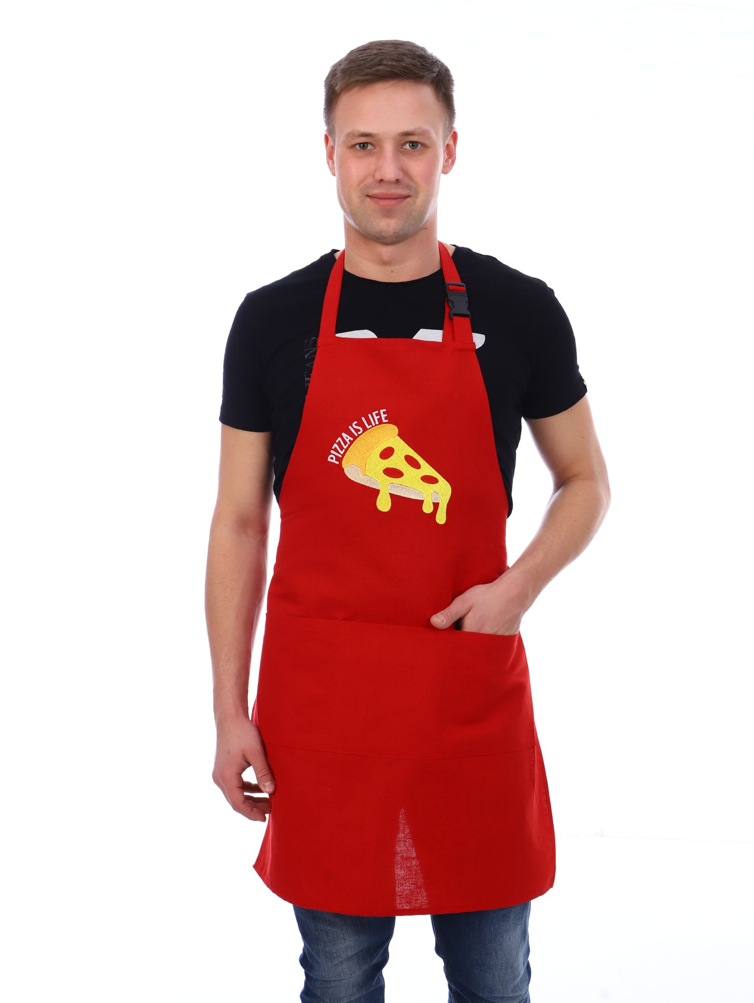 Очень удобный кухонный фартук из льняной ткани с вышивкой на груди.