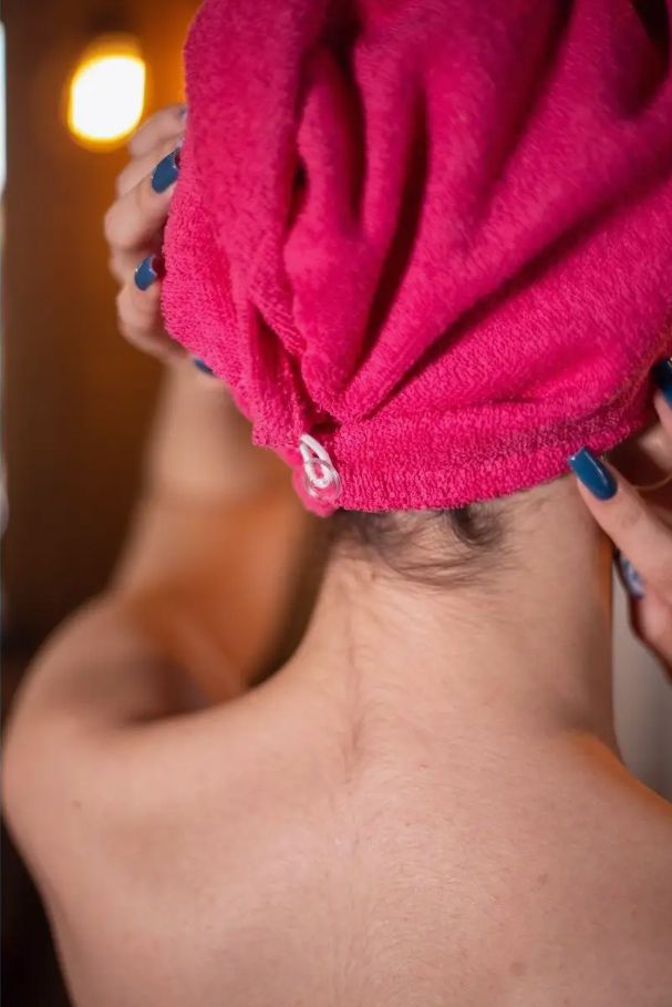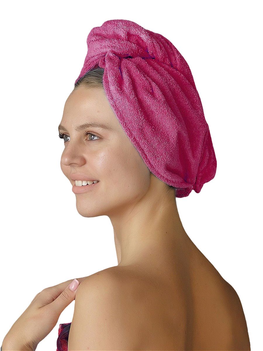 Полотенце для волос махровое чалма - это удобная замена большому банному. Очень легко надевать и снимать, не спадает с головы за счет фиксации чалмы на пуговицу. Достаточно просто опустить голову вниз, укутать волосы, перекинуть один раз через голову и застегнуть. Мягкая ткань 100% хлопок не травмирует локоны и помогает поддерживать здоровый и сияющий блеск волос. Для защиты от термического воздействия используйте шапочку в бане, сауне или хаммам. Как спортивное полотенце в тренажерном и спортивном зале, после водных процедур. Банное полотенце очень компактно, поместится в любой сумочке и на любой полочке. Универсальный размер 20 на 70. За счет застежки не спадет, что позволяет свободно двигаться, не беспокоясь. Тюрбан для сушки легко надевать на любые волосы — длинные, короткие, тонкие и даже самые объемные кудрявые. Полотенца для ванной очень качественные, отлично впитывают влагу в отличие от микрофибры, не линяет при стирке в горячей воде, долговечно, что не скажешь о вафельных. Оригинальный подарок подруге, не нужно ломать голову что подарить бабушке или чем порадовать сестру, свекровь, себе любимой в дом на любой праздник.